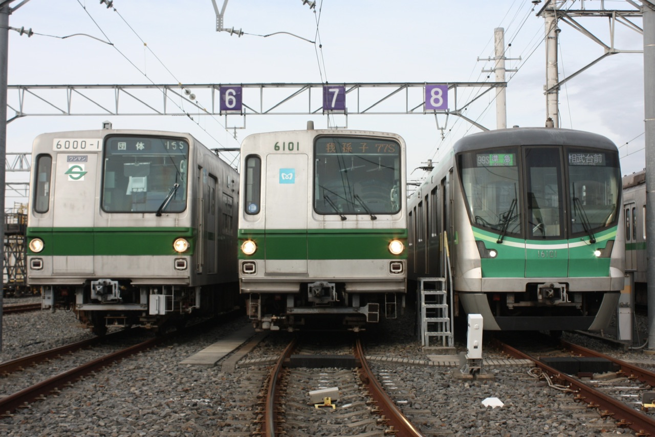 新木場で保管されていた車両を巡っては、6000系6102F、7000系7101F、03系03-101Fが一部車両を除いて解体されており、6102F・7101Fの各先頭車1両は今回のハイフン車同様行徳に搬入されていますが、6000系1次試作車の今後はどうなるのでしょうか?