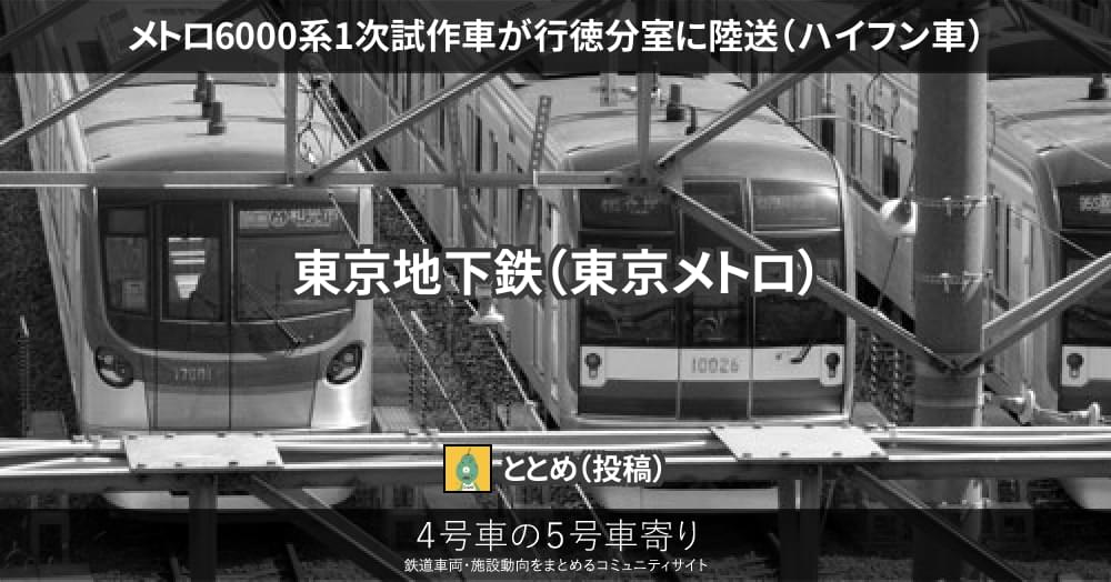 11日から12日にかけて、新木場にて保管され訓練車としても使用されていた東京メトロ6000系1次試作車(ハイフン車)とみられる車体がシートに覆われて行徳まで陸送されたことが確認されています。