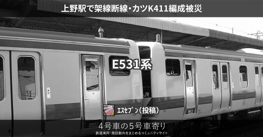 上野駅で架線断線・カツK411編成被災